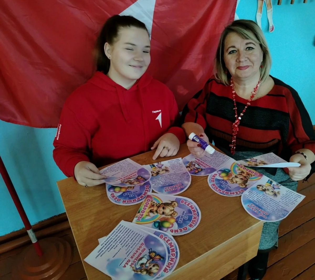 Мария Бычкова, активистка Движения первых из Верхоупской школы, вместе со своим куратором Татьяной Шестопаловой организовали акцию "Дари добро" для младших школьников, приуроченную ко Всемирному дню доброты.